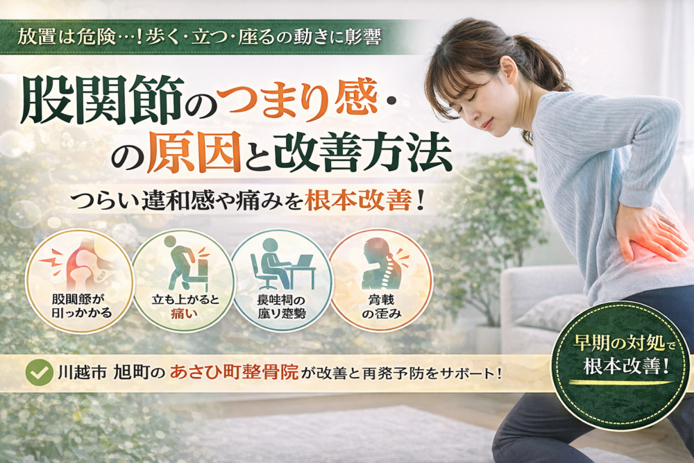 股関節のつまり感や痛みは、単なる疲労ではなく、体のバランスの崩れが原因となっていることが多くあります。
