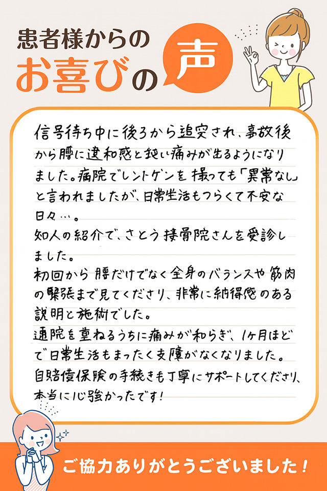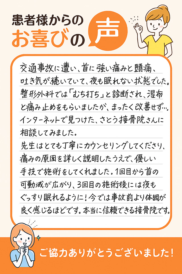 こんにちは!那珂市菅谷の「さとう接骨院」は交通事故・スポーツ傷害の施術に特化した接骨院です。